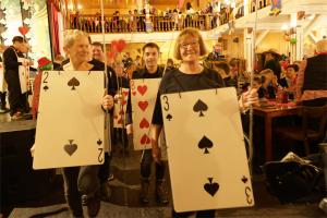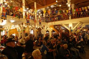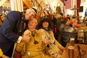 „Es ist schön, mit den Menschen mit Handicaps zu feiern, das ist ein Beweggrund“, sagt Ralf Sasse, ein ehemaliger Prinz aus Fretter. Die Fretteraner, so ergänzt er, veranstalten auch seit mehreren Jahren ein Tag des Sports für die AG Miteinander. Akrobatisch die Einlagen der Funkenmariechen und Prinzengarden, die ihre Frauen hoch unter die Saloondecke schleuderten. Die Band Nightlife feuerte die Stimmung an, die Kölsch Connection brachte sie dann zum Überkochen. Nur wenige Minuten dauerte es, bis sie ihr Equipement auf die Bühne gehievt hatten und den Salon rockten. Hinterm Tresen standen diesmal nicht, wie seit Jahren Margit und Wolfgang Kirchhoff, sie wurden, krankheitsbedingt, von Eva Kruse-Löher und Philipp Aßhoff, dem Geschäftsführer des Elspe-Festivals, bestens vertreten.
