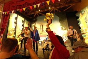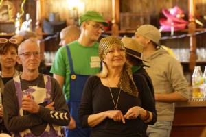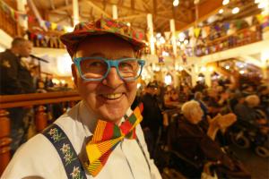 Die AG Miteinander und ihre Menschen mit Handicap sind beim SSV Elspe gern gesehene Gäste, weiß Mario, der auch 2. Vorsitzender der Jugendabteilung des SSV ist. Der diesjährige Karneval der AG Miteinander im Saloon des Elspe-Festivals stand am Sonntag (16. Febr.) unter einem besonderen Stern: 50 Jahre besteht die Arbeitsgemeinschaft nun schon, „und wir wollen jetzt ein Jahr lang Geburtstag feiern“, kündigte Guido Sopart an, der im Saloon als Pirat (Bild) und Moderator durch das mehrstündige Programm führte.